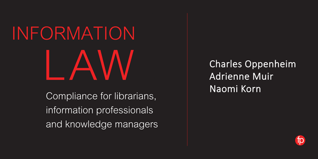 Facet Publishing announce the release of Information Law: Compliance for librarians, information professionals and knowledge managers by Charles Oppenheim, Adrienne Muir and Naomi Korn.