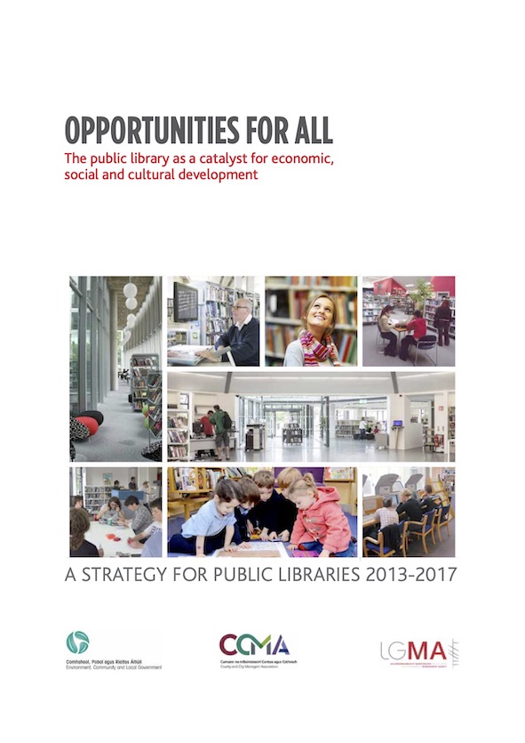 A five-year action plan was published in 2013 Opportunities for all: The pub lic library as a catalyst for economic, social and cultural development 2013-2017 .